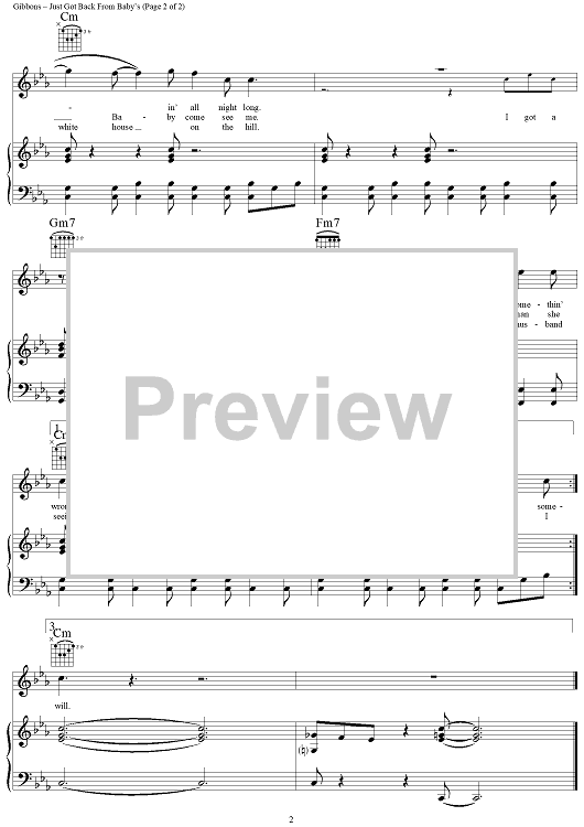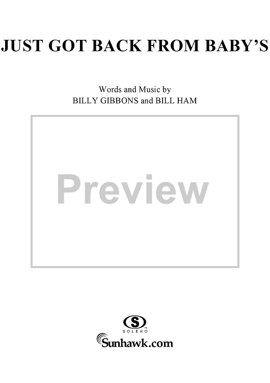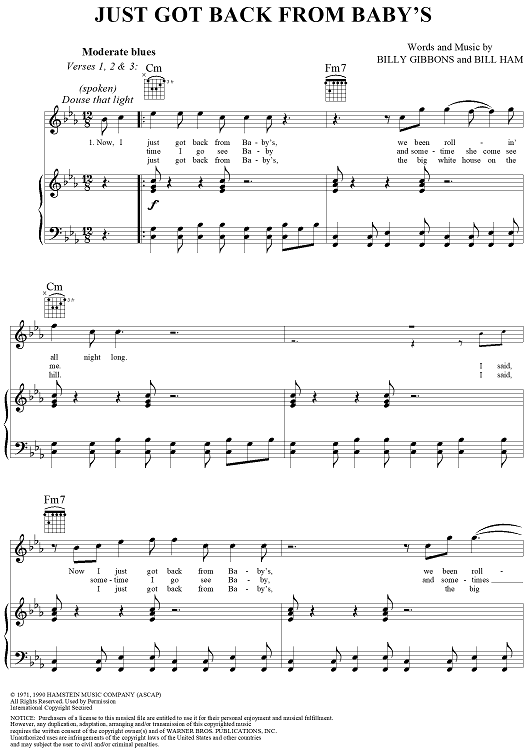 Digital Sheet Music for Just Got Back from Baby's by Billy Gibbons, Bill Ham, ZZ Top scored for Piano/Vocal/Chords; id:241285