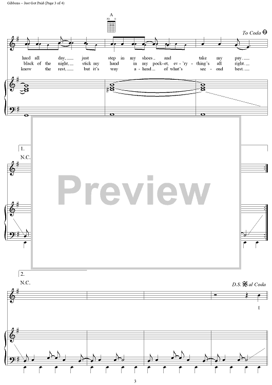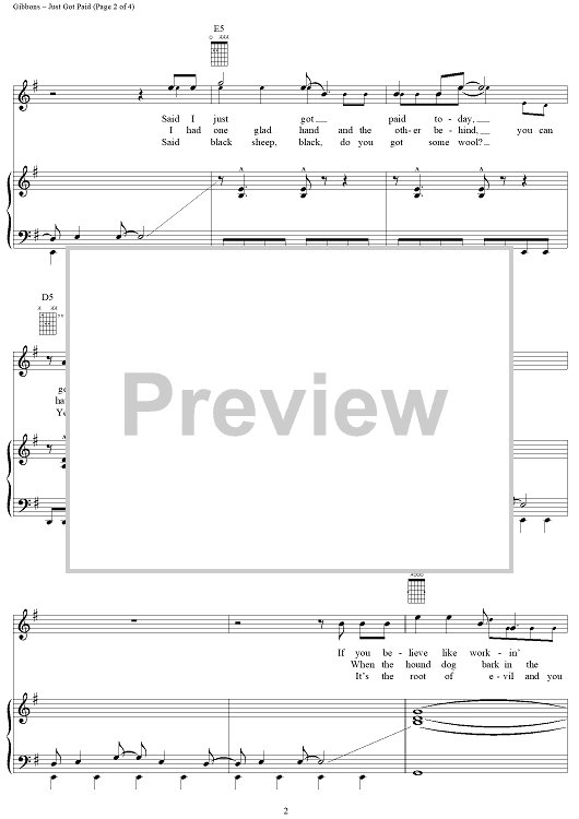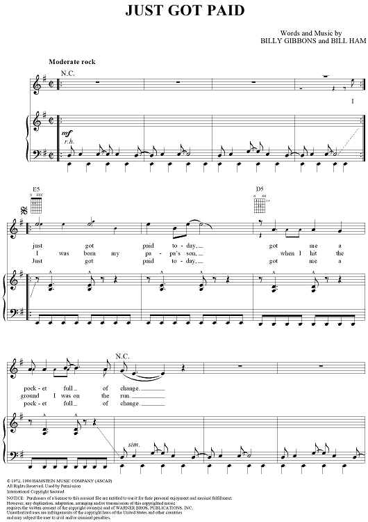 Digital Sheet Music for Just Got Paid by Billy Gibbons, Bill Ham, ZZ Top scored for Piano/Vocal/Chords; id:124318