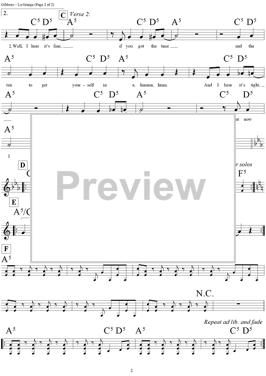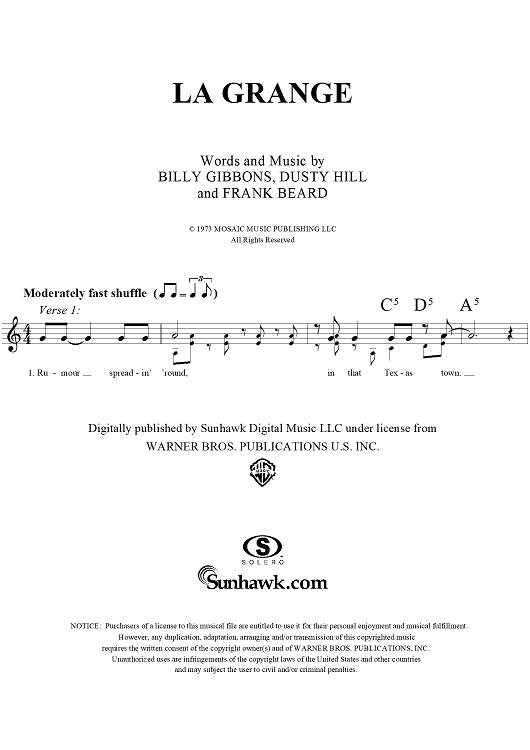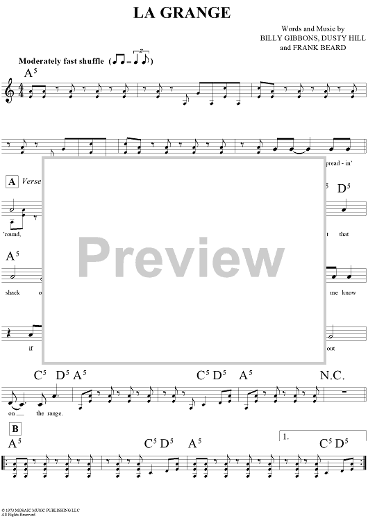 Digital Sheet Music for La Grange by Billy Gibbons, Dusty Hill, Frank Beard, ZZ Top scored for Lead Sheet; id:293979