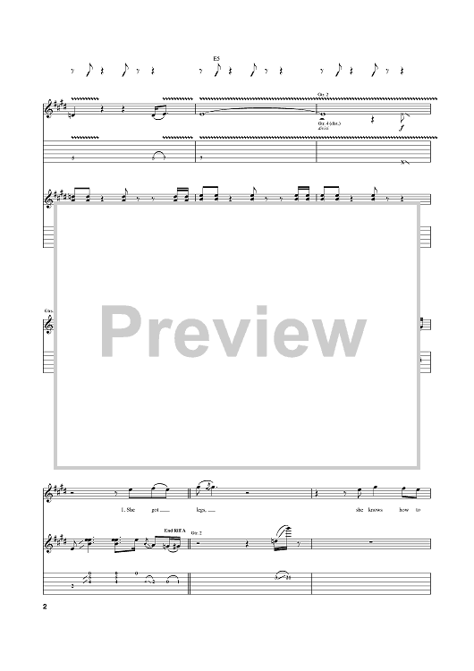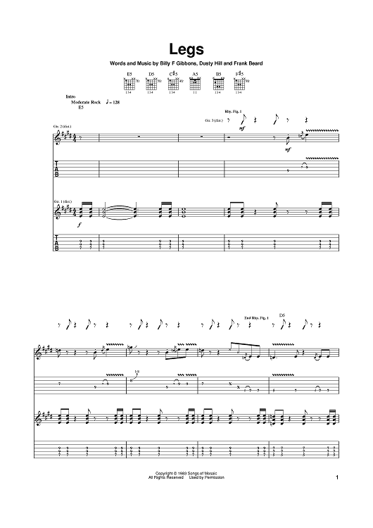 Digital Sheet Music for Legs by Billy Gibbons, Dusty Hill, Frank Beard, ZZ Top scored for Guitar Tab; id:370733