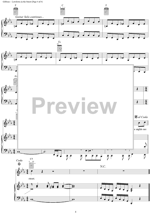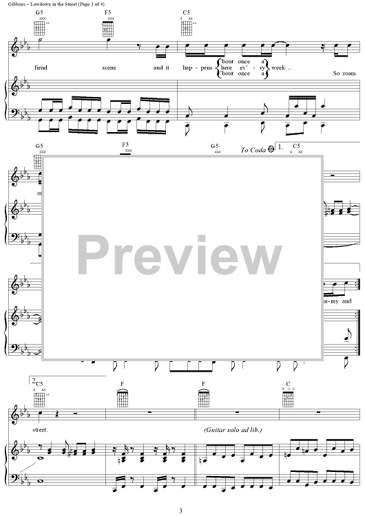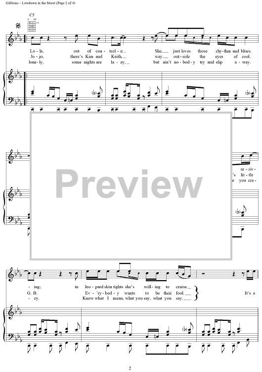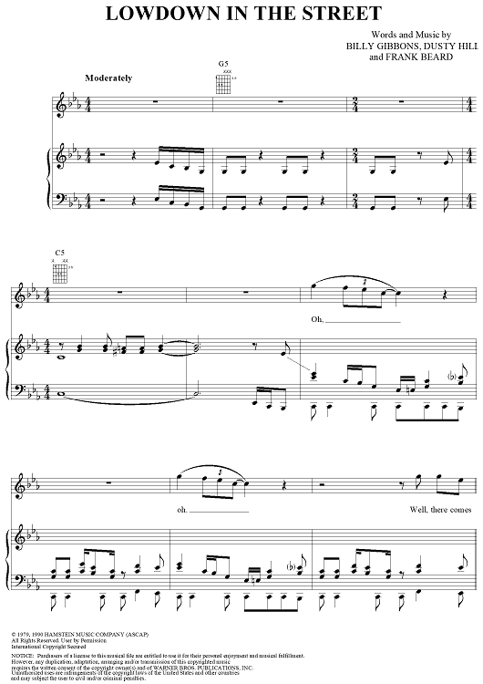 Digital Sheet Music for Lowdown in the Street by Billy Gibbons, Dusty Hill, Frank Beard, ZZ Top scored for Piano/Vocal/Chords; id:268564