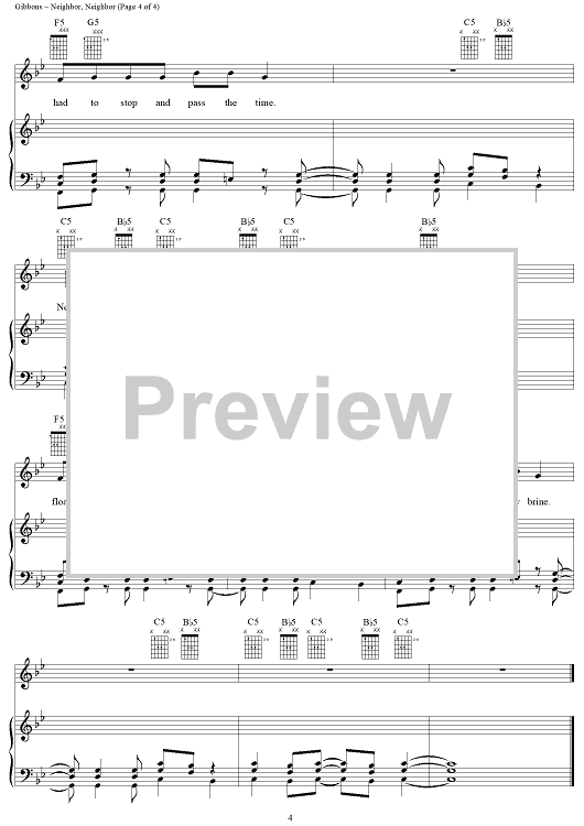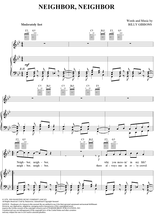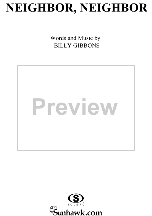 Digital Sheet Music for Neighbor, Neighbor by Billy Gibbons, ZZ Top scored for Piano/Vocal/Chords; id:268278