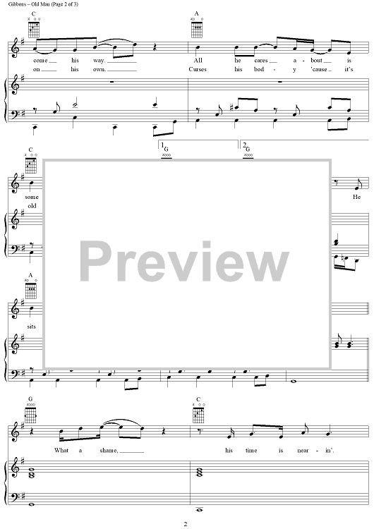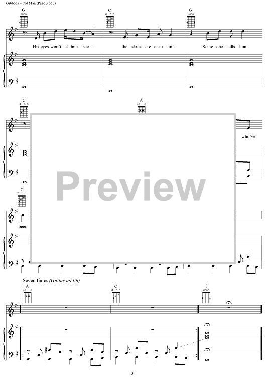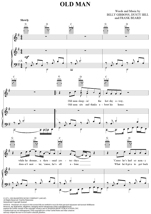 Digital Sheet Music for Old Man by Billy Gibbons, Dusty Hill, Frank Beard, ZZ Top scored for Piano/Vocal/Chords; id:268410