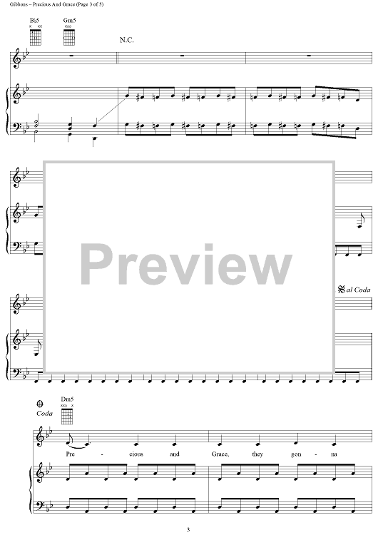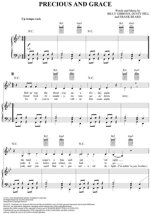 Digital Sheet Music for Precious and Grace by Billy Gibbons, Dusty Hill, Frank Beard, ZZ Top scored for Piano/Vocal/Chords; id:124305