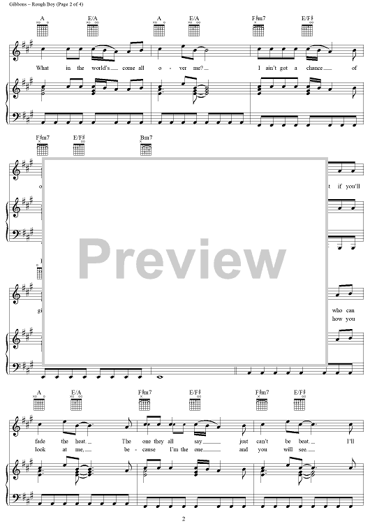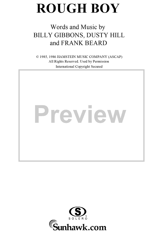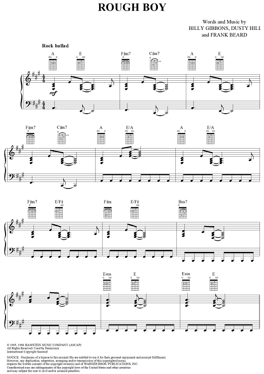 Digital Sheet Music for Rough Boy by Billy Gibbons, Dusty Hill, Frank Beard, ZZ Top scored for Piano/Vocal/Chords; id:119795
