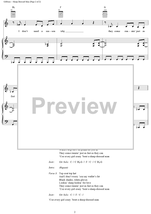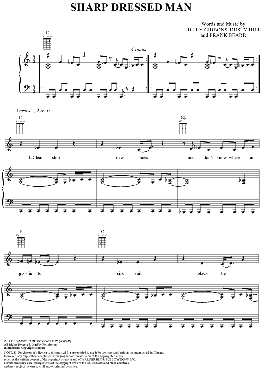 Digital Sheet Music for Sharp Dressed Man by Billy Gibbons, Dusty Hill, Frank Beard, ZZ Top scored for Piano/Vocal/Chords; id:132926