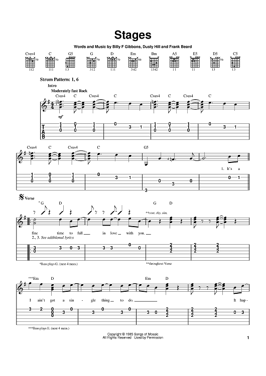 Digital Sheet Music for Stages by Billy Gibbons, Dusty Hill, Frank Beard, ZZ Top scored for Easy Guitar Tab; id:371189