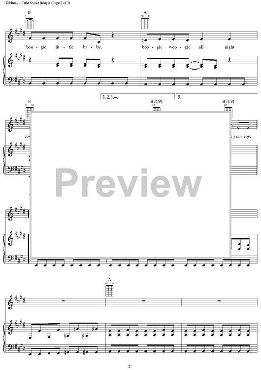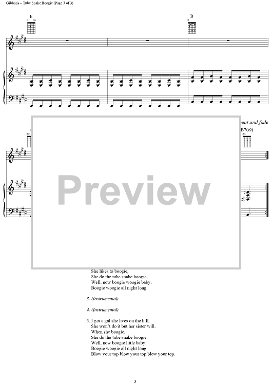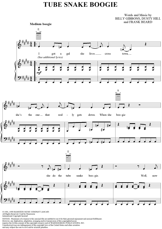 Digital Sheet Music for Tube Snake Boogie by Billy Gibbons, Dusty Hill, Frank Beard, ZZ Top scored for Piano/Vocal/Chords; id:187701