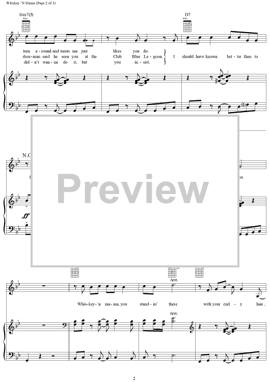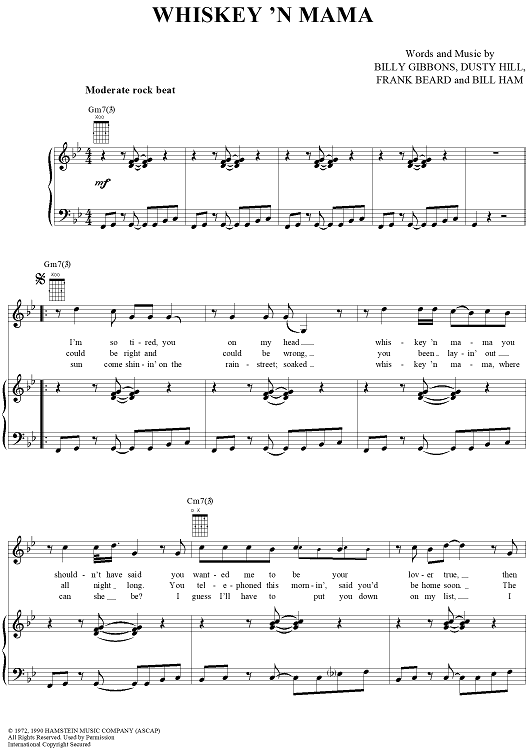 Digital Sheet Music for Whiskey 'N Mama by Billy Gibbons, Dusty Hill, Frank Beard, Bill Ham, ZZ Top scored for Piano/Vocal/Chords; id:189322