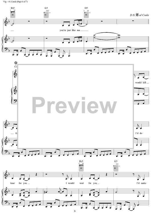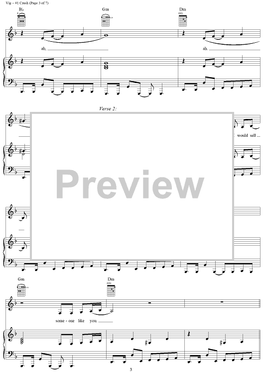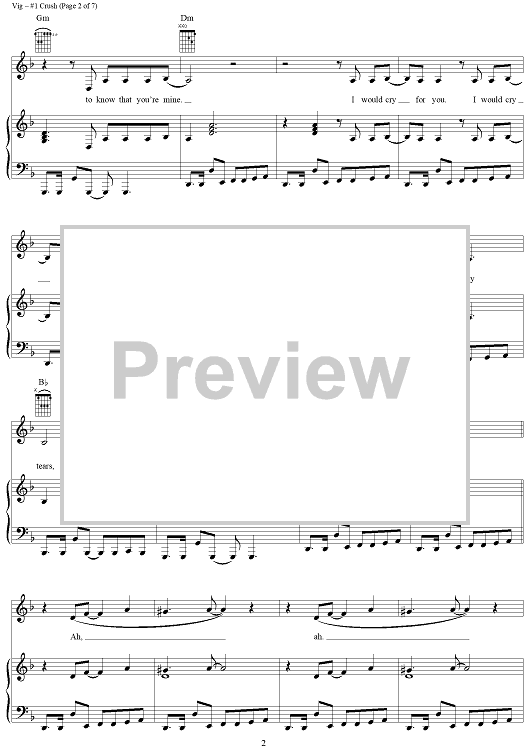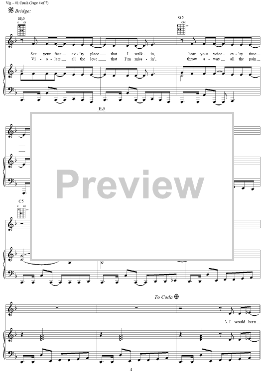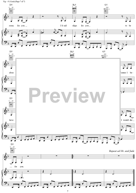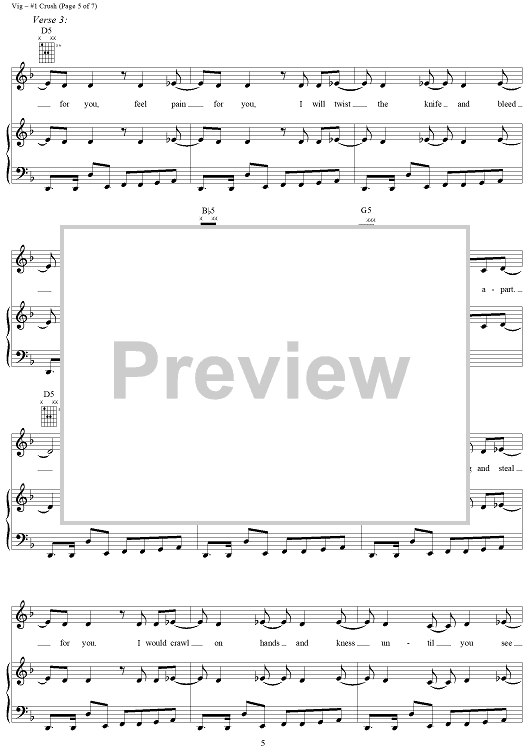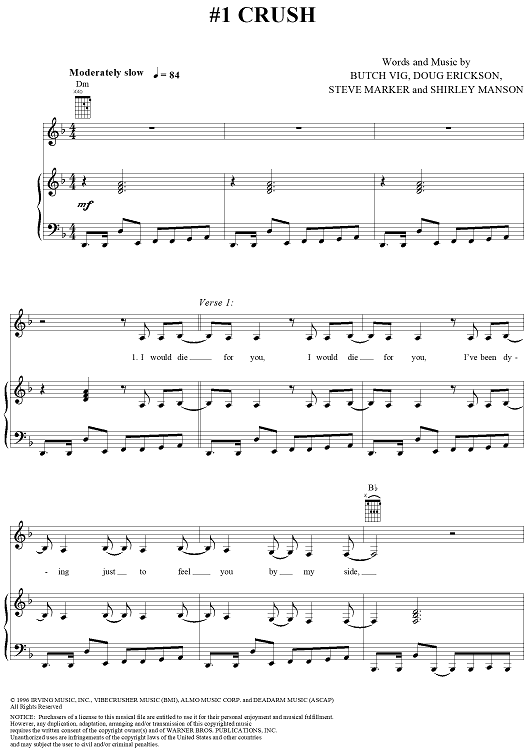 Digital Sheet Music for #1 Crush by Garbage, Steve Marker, Butch Vig, Doug Erikson, Shirley Manson scored for Piano/Vocal/Chords; id:264816