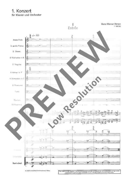 Digital Sheet Music for 1. Konzert - Full Score by Hans Werner Henze scored for Piano And Orchestra; id:474041