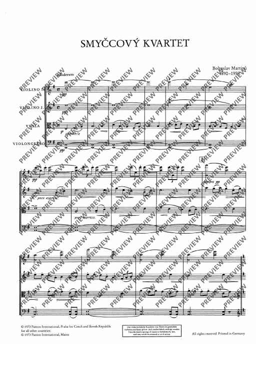 "1. String quartet - Score and Parts" Sheet Music by Bohuslav Martinu