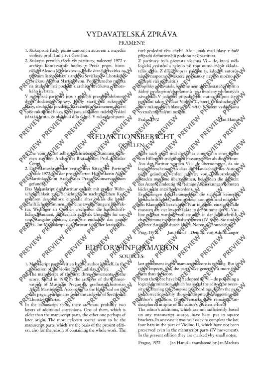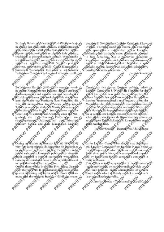 Digital Sheet Music for 1. String quartet - Score and Parts by Bohuslav Martinu scored for String Quartet; id:476759