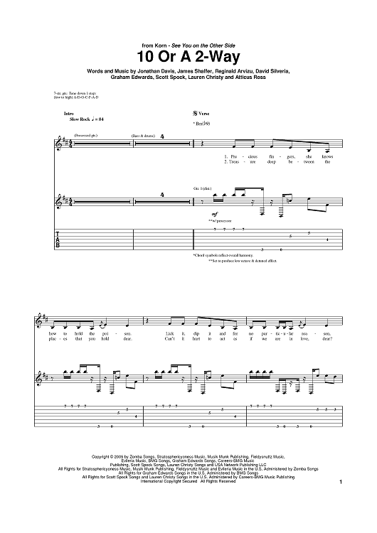 Digital Sheet Music for 10 Or A 2-Way by Jonathan Davis, Fieldy, Korn, Lauren Christy, David Silveria, Munky, Graham Edwards, Scott Spock, Atticus Ross scored for Guitar Tab; id:389420