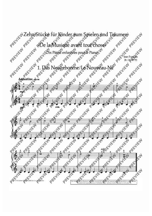 Digital Sheet Music for 10 Pieces for children to play and dream by Jean Françaix scored for Piano; id:482838