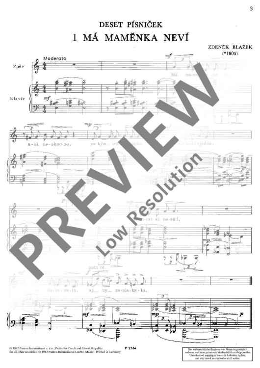Digital Sheet Music for 10 Pieces by Zdenek Blazek scored for Voice And Piano; id:491380
