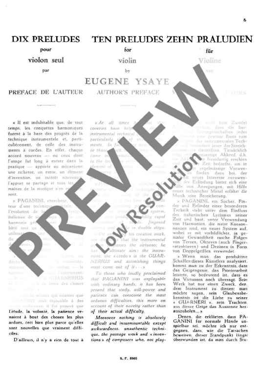 Digital Sheet Music for 10 Préludes by Eugène Ysaÿe scored for Violin; id:476319