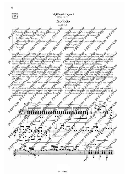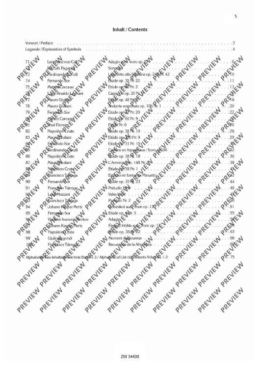 Compositions by: von Call, Carcassi, Carulli, Coste, Ferrer, Giuliani, Legnani, Mertz, Morkov, Mozzani, Paganini, Regondi, Sor, Tárrega.