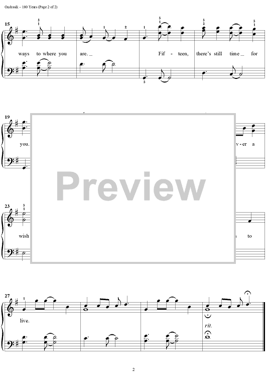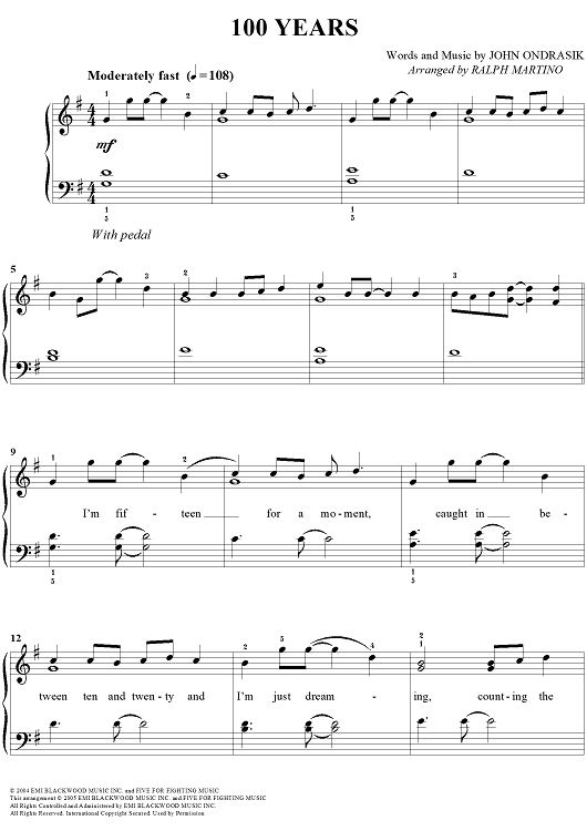 Digital Sheet Music for 100 Years by Five for Fighting, Ralph Martino scored for Piano; id:385713