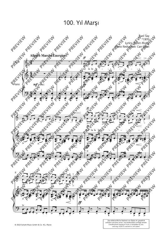 Digital Sheet Music for 100. Yil Marsi by Fazil Say scored for Choir And Piano; id:500295