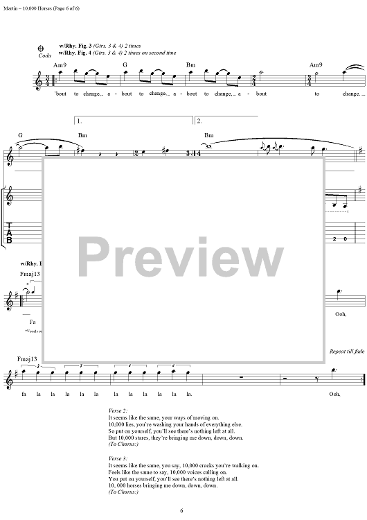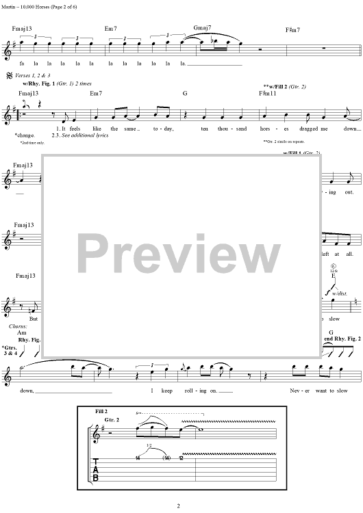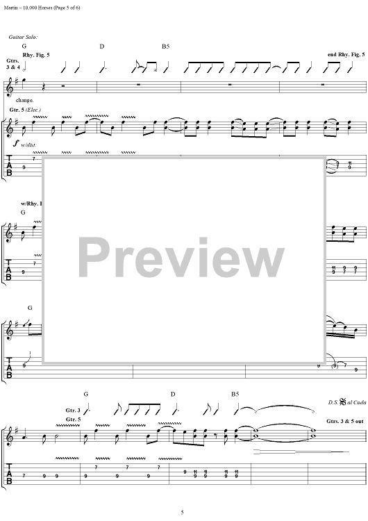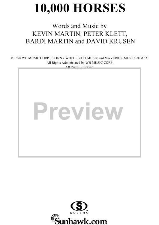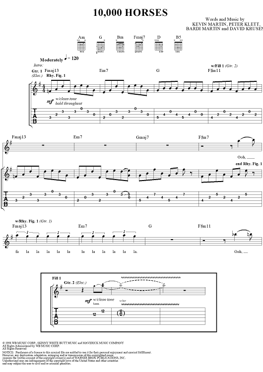 Digital Sheet Music for 10,000 Horses by Kevin Martin, Bardi Martin, David Krusen, Peter Klett, Candlebox scored for Guitar Tab/Vocal; id:114378