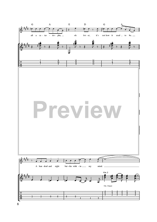 Digital Sheet Music for 108 Battles (Of The Mind) by Alonza Bevan, Kula Shaker, Crispian Mills scored for Guitar Tab; id:394922