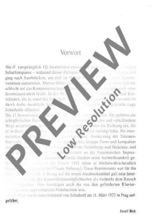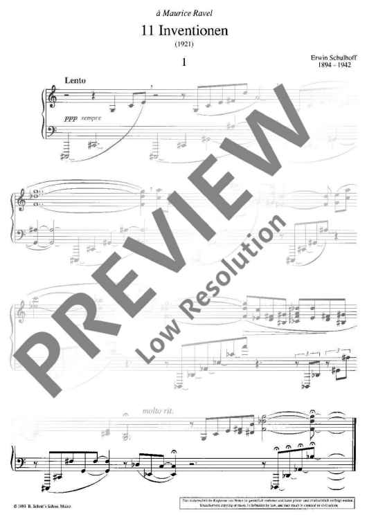 Digital Sheet Music for 11 Inventions by Erwin Schulhoff scored for Piano; id:482922