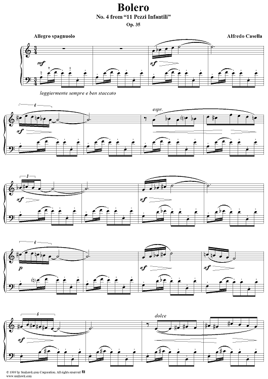 Digital Sheet Music for 11 Pezzi Infantil, No 4: Bolero by Alfredo Casella scored for Piano Solo; id:273461