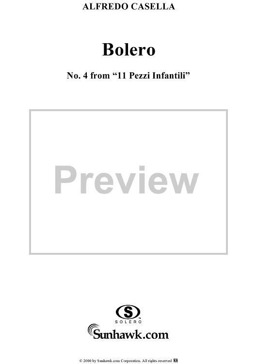 "11 Pezzi Infantil, No 4: Bolero" Sheet Music by Alfredo Casella
