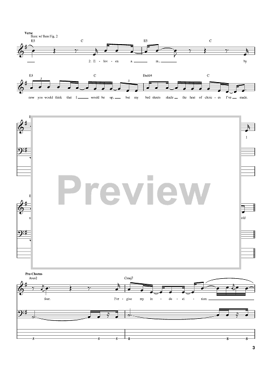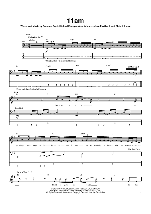Digital Sheet Music for 11am by Brandon Boyd, Mike Einziger, Incubus, Alex Katunich scored for Bass Tab; id:371992