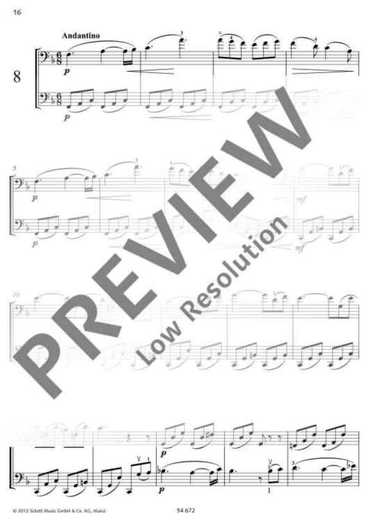 Friedrich August Kummer (1797–1879) came from a family of musicians, studied violoncello with the renowned solo cellist Friedrich Dotzauer of the Dresden Court Chapel and then worked as a cellist first at the Royal Opera House, later at the Dresden Court Chapel. Kummer composed of course for 'his' instrument as well, writing not only a cello method, but also a large number of performance pieces. To prevent any trouble with difficult works, his works also include numerous studies and easy pieces such as '12 Duets for 2 Violoncellos' Op. 105. They are one-movement pieces which demand cantabile and concertante playing at a moderate level of difficulty and are the ideal introduction to chamber music playing.