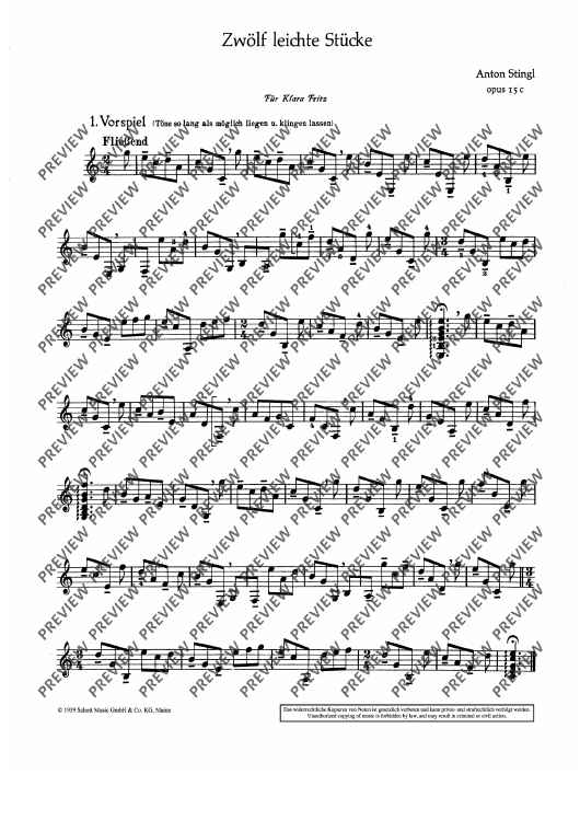Digital Sheet Music for 12 Easy Pieces by Anton Stingl scored for Guitar; id:500178