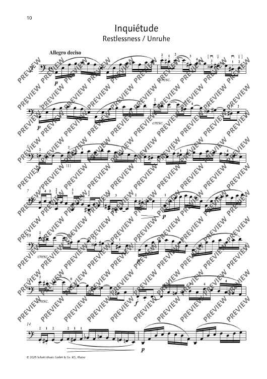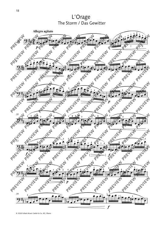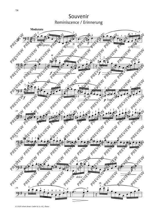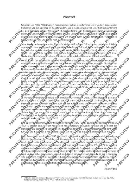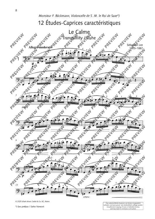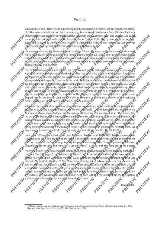 Virtuoso and expressive, Sebastian Lee's masterpiece for cello! Etudes for advanced cellists Expressive romantic miniatures With piano accompaniment ad lib. Lee, one of the outstanding cellists and cello pedagogues of the 19th century, did not compose purely technical etudes in his Opus 100, but rather musically appealing performance pieces. These are romantic character pieces with poetic titles such as Unrest - Souvenir - The Thunderstorm - The Gondolier etc. The carefully edited text follows the first edition of 1864 with the original fingerings and bowings. With tips for practising.