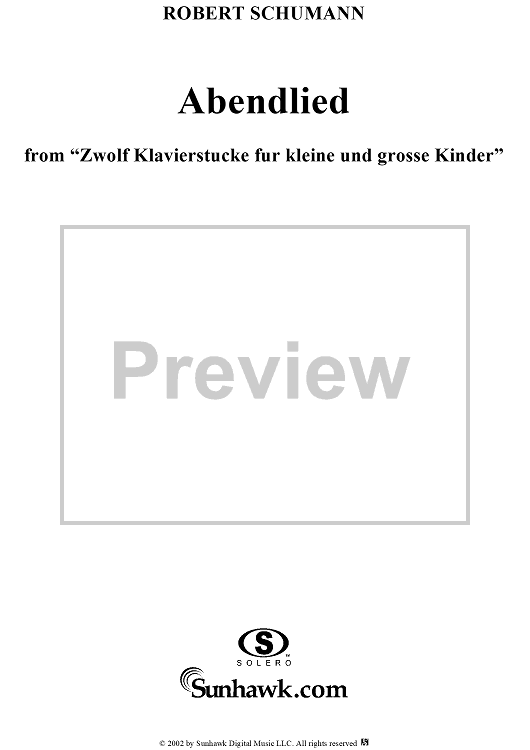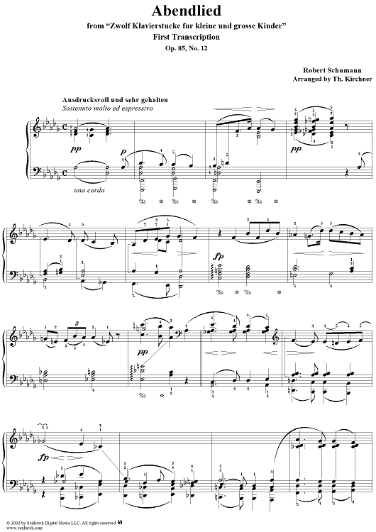 Digital Sheet Music for 12 Klavierstücke für kleine und grosse Kinder, Op. 85, No. 12 - Abendlied (Evening Song) arr. by Robert Schumann, Theodor Kirchner scored for Piano Solo; id:250323
