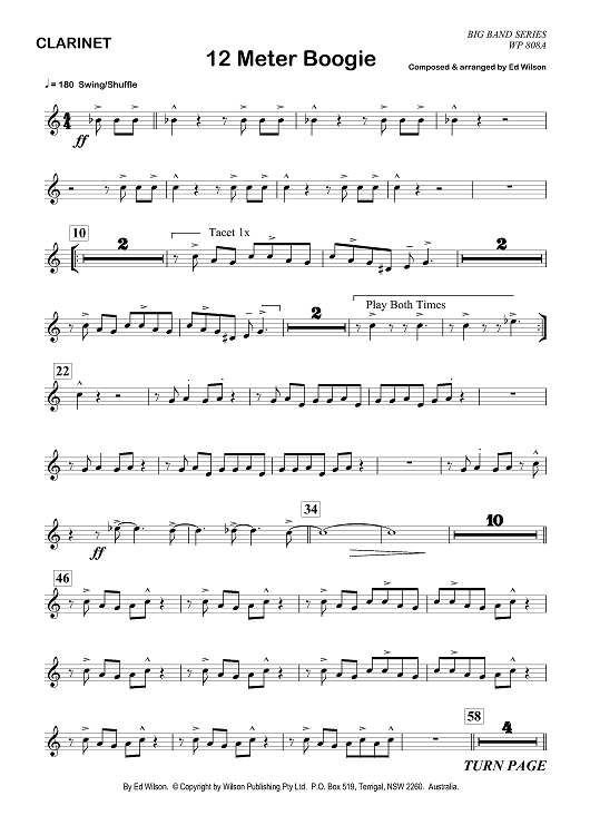 Digital Sheet Music for 12 Meter Boogie - Clarinet by Ed Wilson scored for Jazz Ensemble; id:356741
