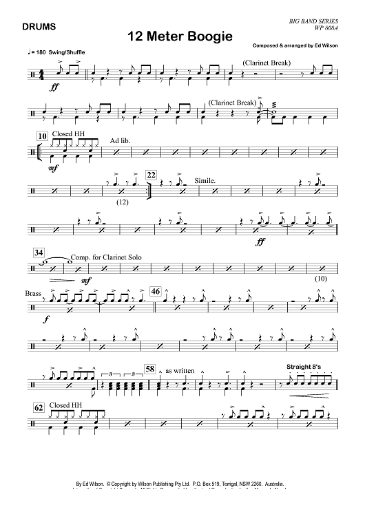 "12 Meter Boogie - Drums" Sheet Music by Ed Wilson