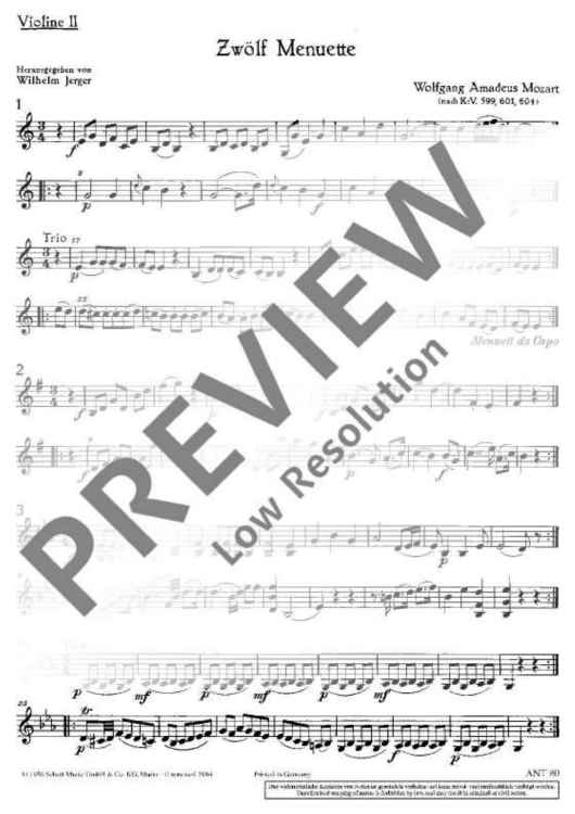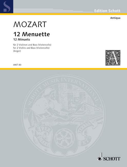 Digital Sheet Music for 12 Minuets - Set of Parts by Wolfgang Amadeus Mozart scored for 2 Violins And Double Bass (cello); id:471074