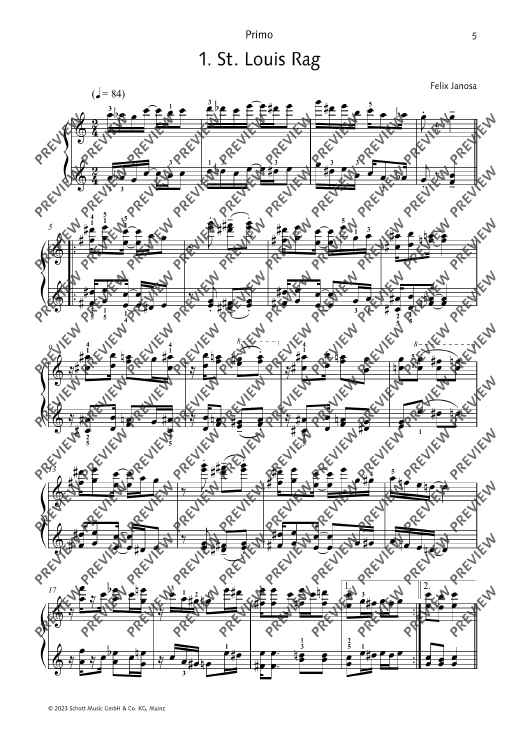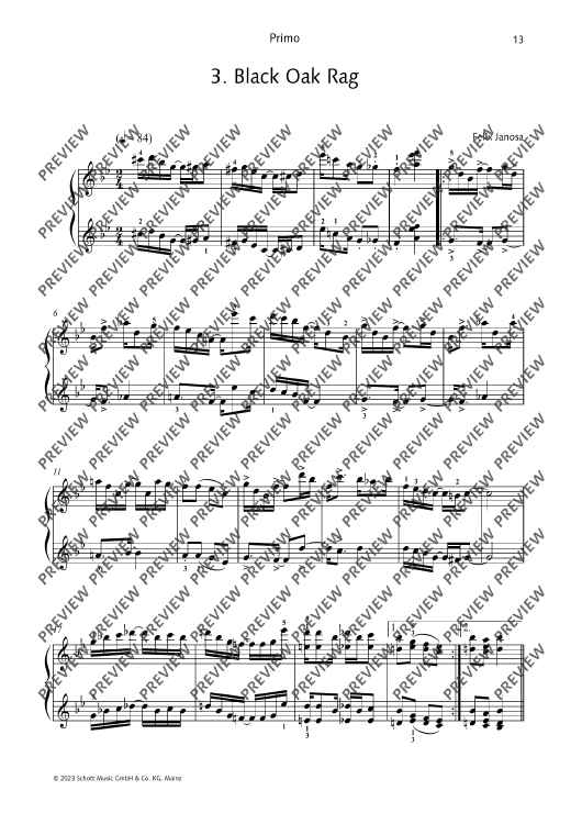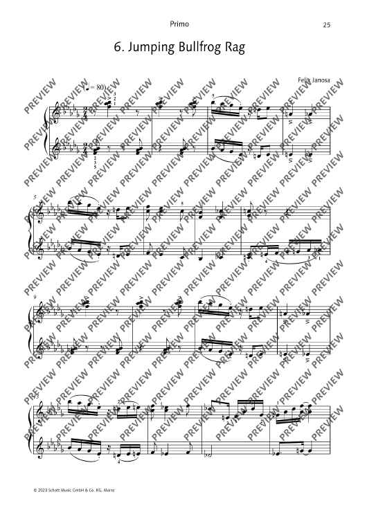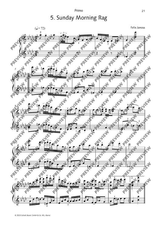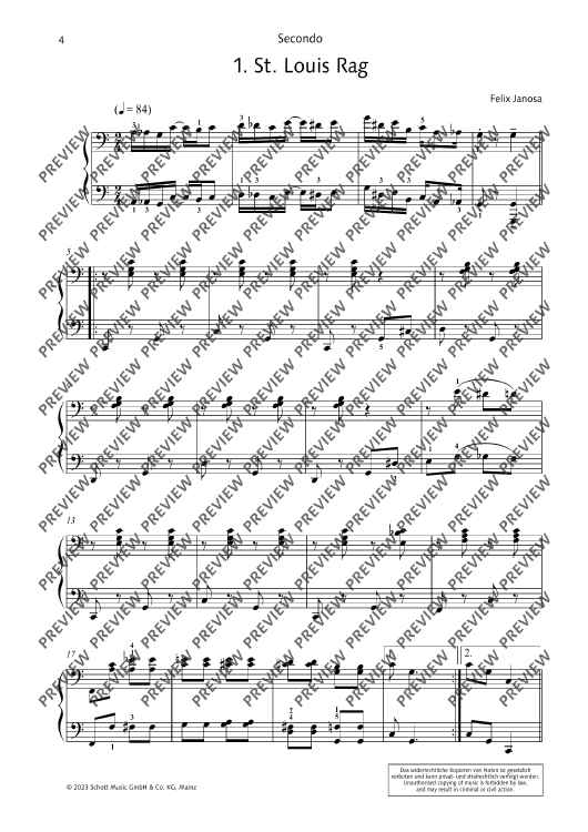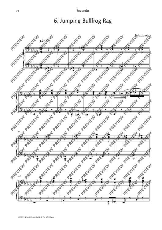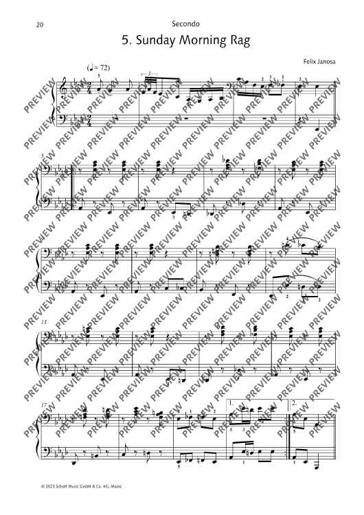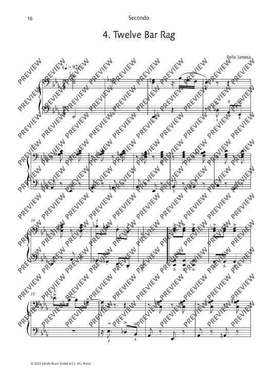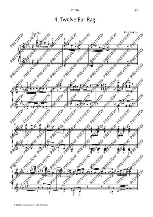 12 ragtimes in the style of Scott Joplin for piano, four-hands. Short and technically easy to master, rekindle the fun of ragtime! Felix Janosa is known to most children and parents in Germany as the composer of the Ritter Rost musicals. Although he studied school music and composition at the Folkwang Hochschule in Essen, he never went to school as a music teacher, but became a freelance composer, music cabaret artist, jazz pianist and music education author