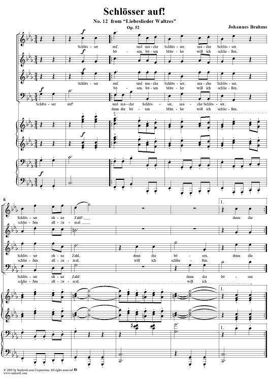 "12. Schlosser auf!" Sheet Music by Johannes Brahms
