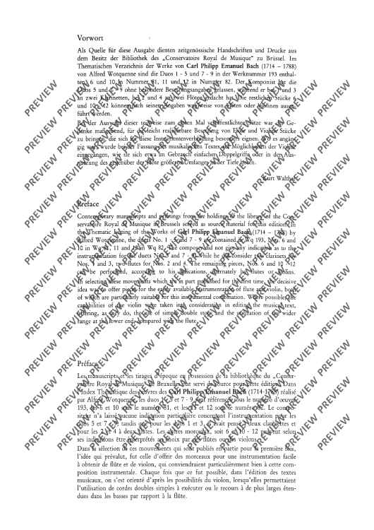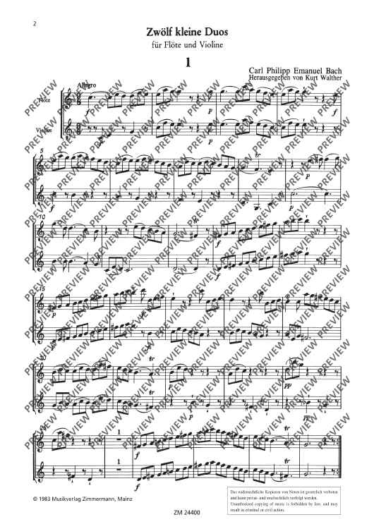 "12 Short Duets" Sheet Music by Carl Philipp Emanuel Bach
