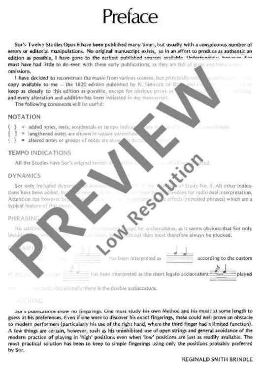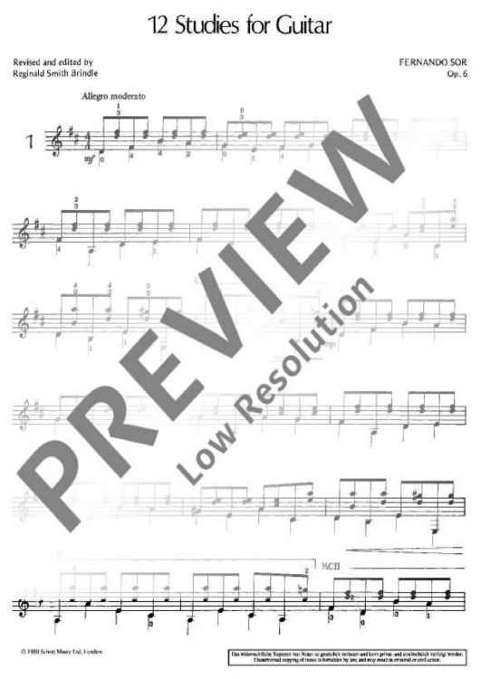 Digital Sheet Music for 12 Studies by Fernando Sor scored for Guitar; id:486399