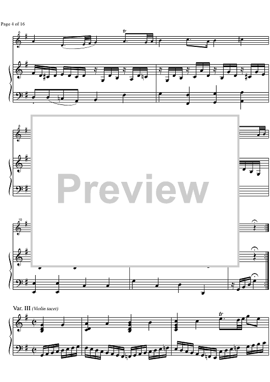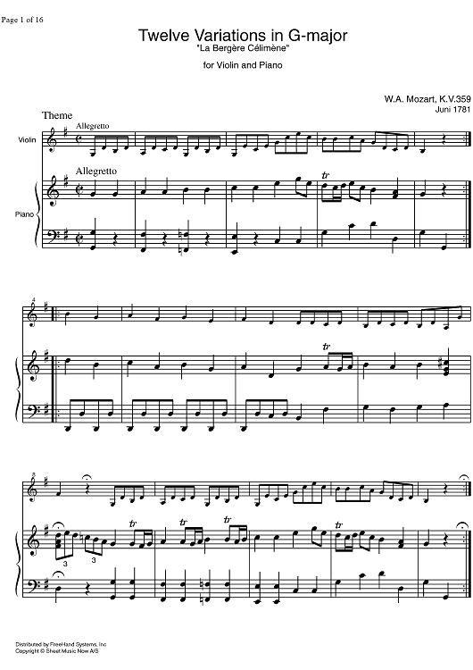 Digital Sheet Music for 12 Variations G Major KV359 - Score by Wolfgang Amadeus Mozart scored for Violin/Piano; id:329539