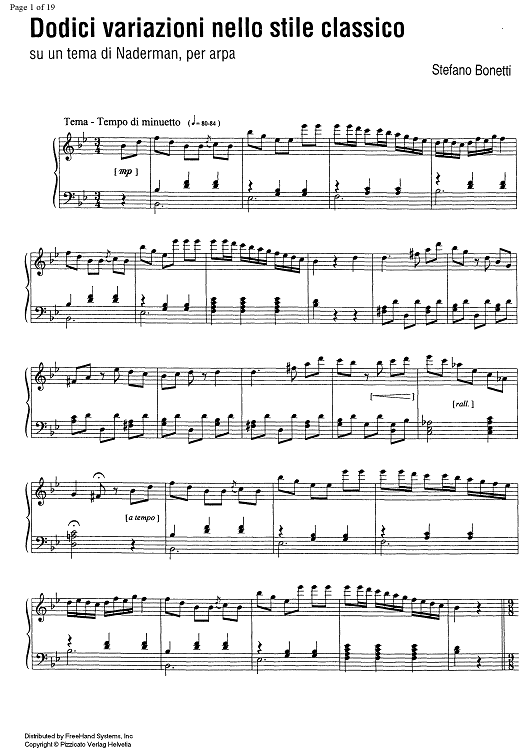 Digital Sheet Music for 12 variazioni nello stile classico by , Stefano Bonetti scored for Harp Solo; id:329898