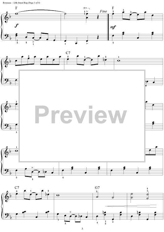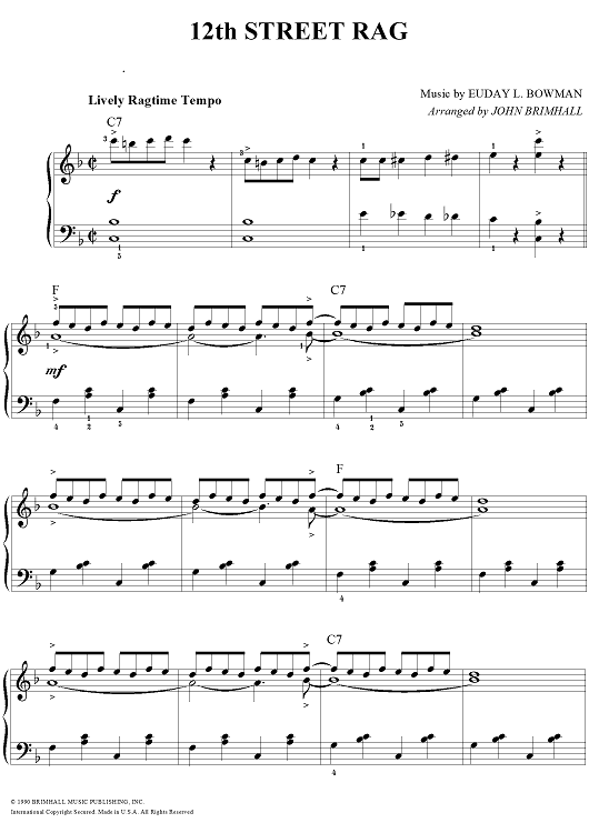 Digital Sheet Music for 12th Street Rag by Euday L. Bowman, John Brimhall scored for Easy Piano; id:275363