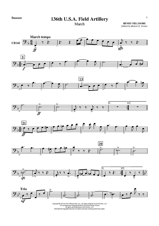 Digital Sheet Music for 136th U.S.A. Field Artillery (March) - Bassoon by Henry Fillmore, Robert E. Foster scored for Concert Band; id:430431