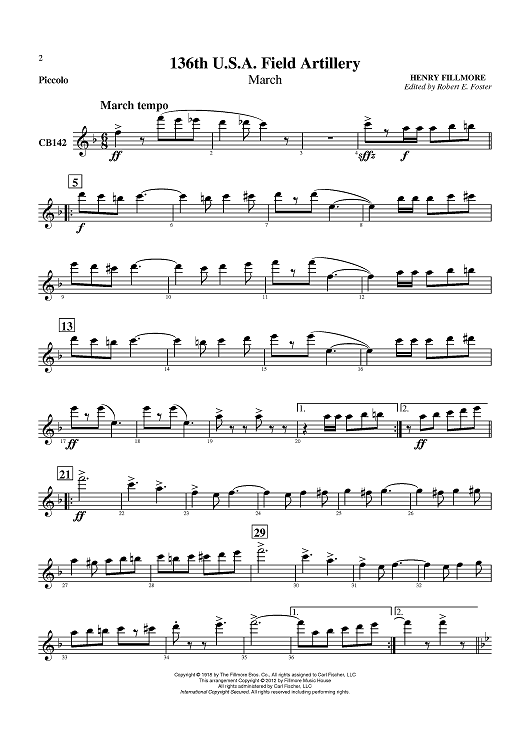 Digital Sheet Music for 136th U.S.A. Field Artillery (March) - Piccolo by Henry Fillmore, Robert E. Foster scored for Concert Band; id:430423