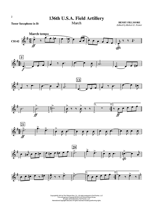 Digital Sheet Music for 136th U.S.A. Field Artillery (March) - Tenor Sax by Henry Fillmore, Robert E. Foster scored for Concert Band; id:430434