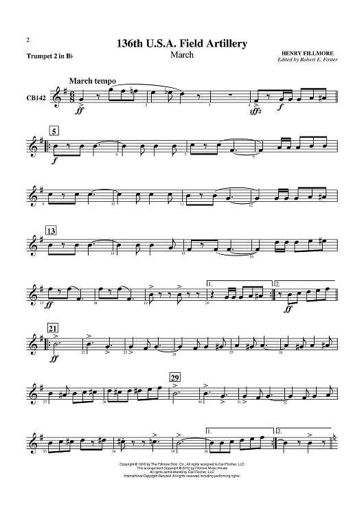 Digital Sheet Music for 136th U.S.A. Field Artillery (March) - Trumpet 2 in Bb by Henry Fillmore, Robert E. Foster scored for Concert Band; id:430437