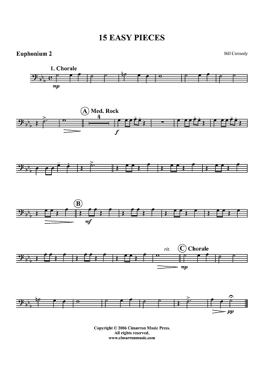 "15 Easy Pieces - Euphonium 2 BC/TC" Sheet Music by Bill Carmody