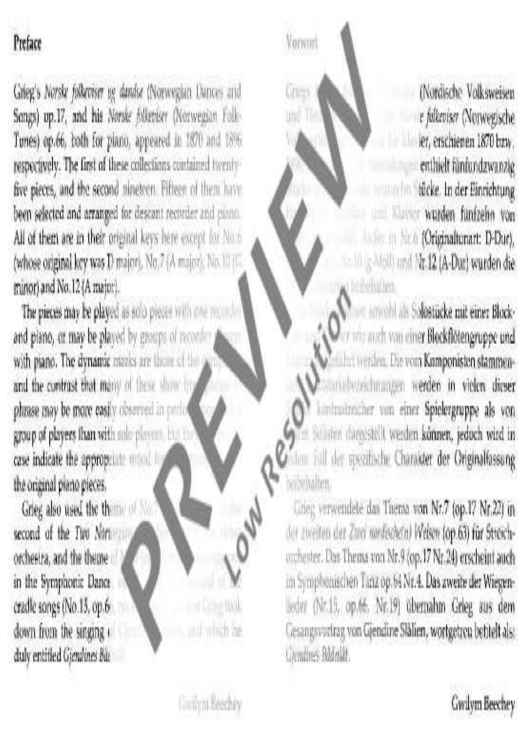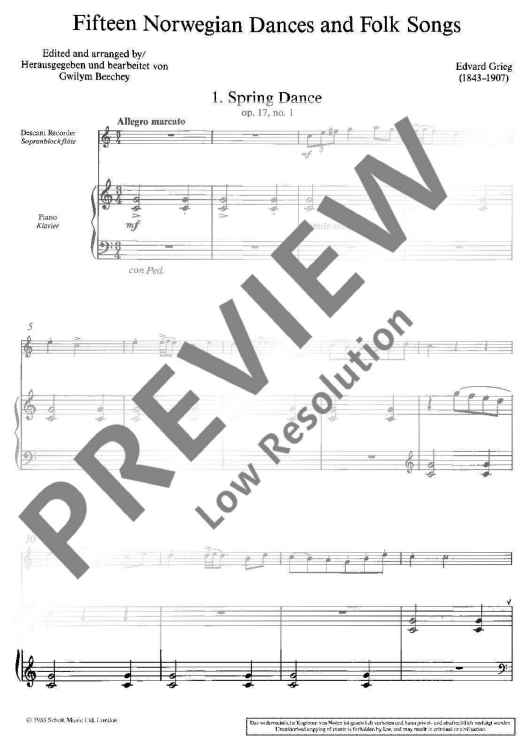 Digital Sheet Music for 15 Norwegian Dances and Folk Songs by Edvard Grieg scored for Descant Recorder And Piano; id:474533